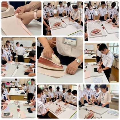 今日のめあては、「まつり縫いの特徴や縫い方を知り、まつり縫いができるようになる。」です。授業の最初は、前時に練習したまつり縫いを見ながら復習です。それぞれの課題をパソコンに入力して学習が始まりました。今日は、作品を作っているスウェーデン布でまつり縫いをします。アイロンを使って丁寧に仕上げます。最後は teamsで、作品を提出しました。