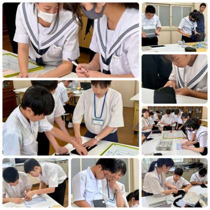 本日2時間目、2年3組で家庭科上木先生が研究授業を行いました。現在、2年生の技術・家庭科はひとクラスを2分割して、少人数授業で行っています。