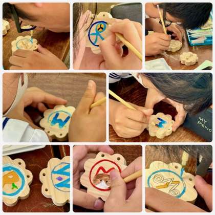 4月に、大阪・関西万国博覧会に向けて、アサヒホールディングス様がSDG sの出前授業に来てくださいました。2年生は「森を守る」お話を聞いて、間伐材で作ったカスタネットをいただきました。2年生は、このカスタネットに、自分のイニシャルをデザインして描く学習に取り組んでいます。個性が豊かです。