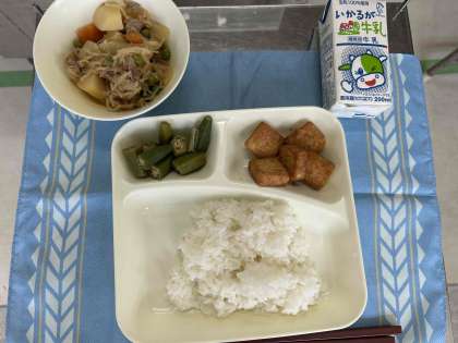 オクラは、薄い黄色の花を咲かせます。切り口が、星のような形をしているのが特徴です。