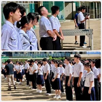 全校生徒の皆さんも、1学期間4月のまだ肌寒かった日から今日まで、定刻に集合整列し、色々な話を聞いてくれました。お疲れ様でした。