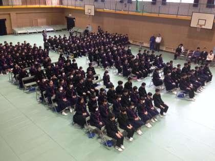 3月9日(水)、1年生から3年生まで全校生徒がそろっての卒業式予行を行いました。