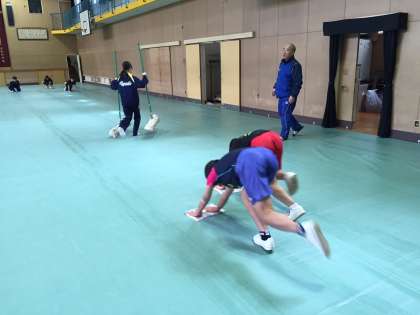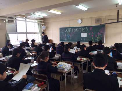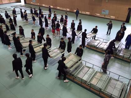 4月5日(火)、入学式の後は教科書の配布と最初の学活です。体育館では、在校生がきびきびと片づけをしています。