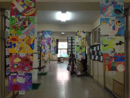 午後には部活動、教科、学年などの生徒の展示物、PTAの作品展示の見学をしました。