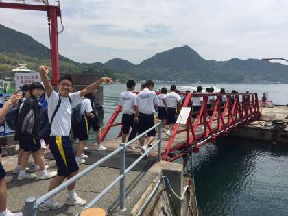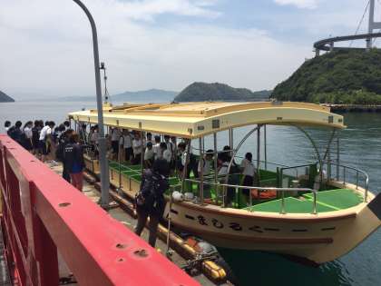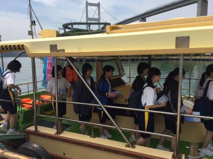 1組2組は、サイクリング3組は、観湖船で見学です?