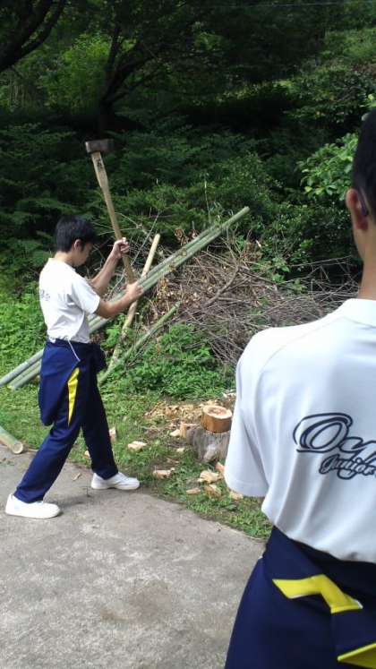 薪割りは、次にやって来る学校の生徒のために。大淀中生がご飯を炊くのに使わせていただいたのは、前の学校の生徒さんたちが用意してくれていたものでした。