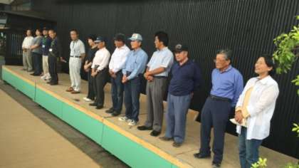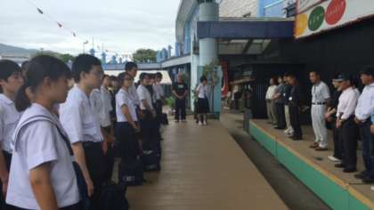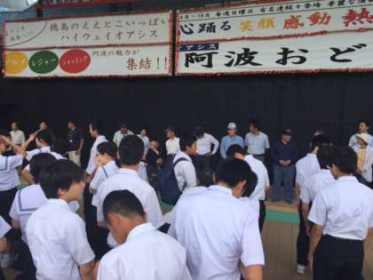 吉野川ハイウェイオアシスで民泊ごとに整列して、離村式を行いました。