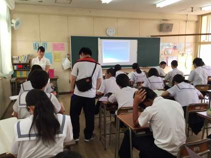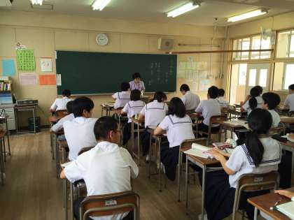 3年1組は養覚教諭の家庭科、3年2組は福倉教諭、西岡教諭の国語です。