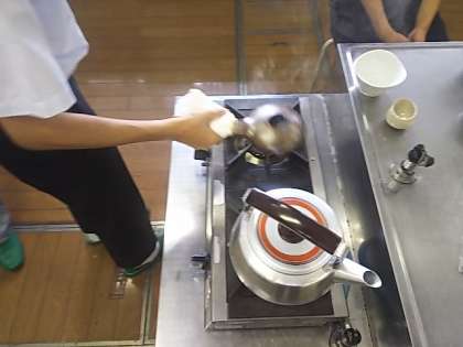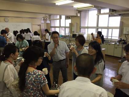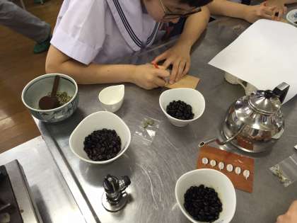 生豆を焙煎し、調理室だけでなく体育館棟全体にコーヒーの香りが広がりました。こどもたちは試飲をして味を比べましたが、少し苦いという感想が多かったです。保護者の方々にも楽しんでいただきました。