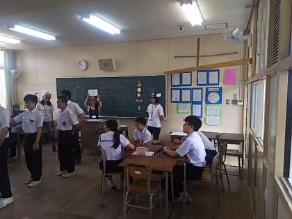 くじ引きでチームを分け、英語を使ったゲームやクイズを楽しみました。クイズに正解したときは盛り上がり、ガッツポーズも飛び出しました。