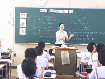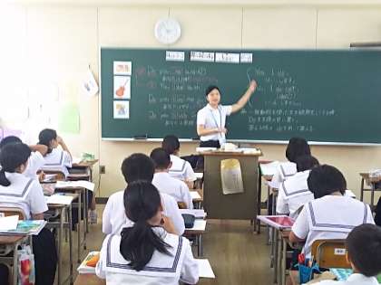 6限目、1年1組で教育実習生の橋内先生の研究授業が行われました。