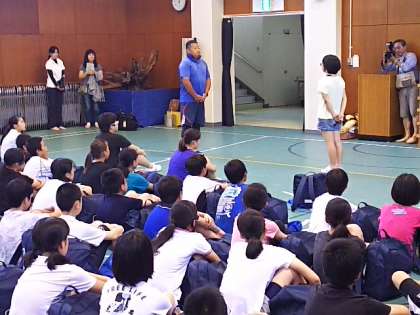 代表生徒のあいさつのあと、館内の利用についてと、カヌー・カヤックのオリエンテーションを受けました。