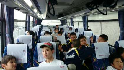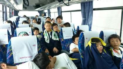 2号車の様子です。やや疲れがきたのか、眠りについた生徒もでてます。
