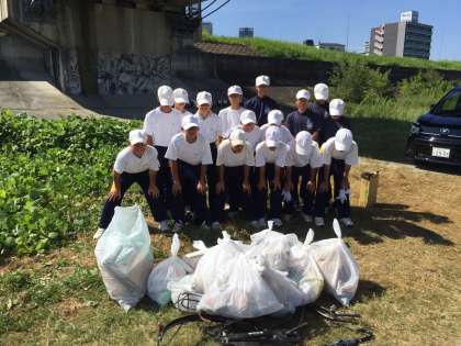 8月7日(日)、なにわ淀川花火大会の清掃活動に野球部員が参加しました。