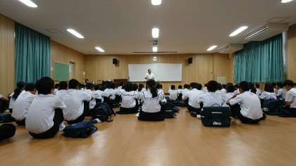 本日は1年の学年登校日です。長崎に原子爆弾が落とされた日ということもあり、平和を考えるため、多目的室で「消え去らぬ傷あと 火の海-大阪」を見て学習しました。