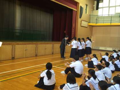 校長先生からは2学期がスタートするにあたり、ルールを守りいじめのない学校にしてほしい、自分自身の目標を決めて一生懸命取り組んでほしい、体力をつけてほしい、という話がありました。