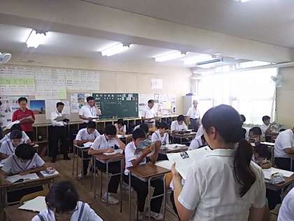 他校の校長先生方や教育委員会の方々にお越しいただき、授業を見ていただきました。
