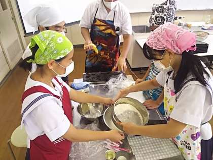 3年生の家庭科では、バナナマフィンといももちを作りました。