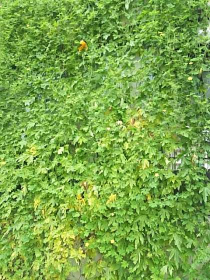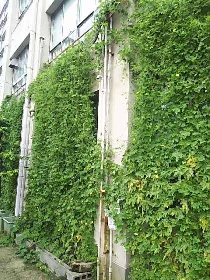 本校では、緑化事業の一つとして、ゴーヤによる緑のカーテンを作っています。