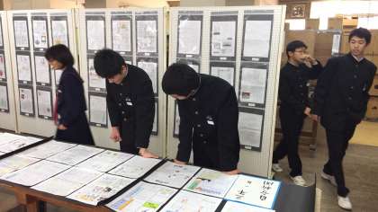 技術室では、国語・社会の作品、1年生の「一泊移住の思い出ハガキ」、特別支援学級の作品、中津支援学校の作品を展示しています。
