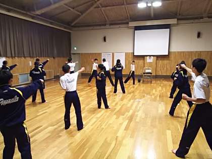 立ち方、座り方、礼儀作法、突き方、蹴り方、受け方など、少林寺拳法の諸法を取り入れたダンスを行います。
