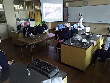 養覚先生による「家庭科」の授業です。3年生で調理実習を行いました。