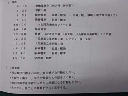 2年生は、明日、校外学習を実施します。