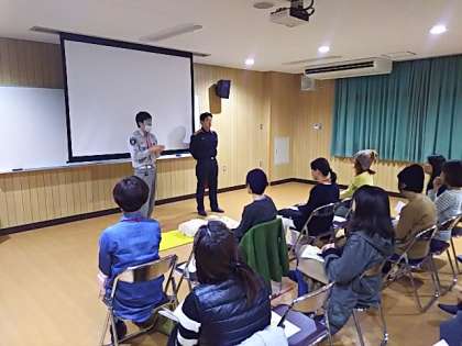 北消防署から講師をお招きし、校下小学校の保護者の方々も含め、