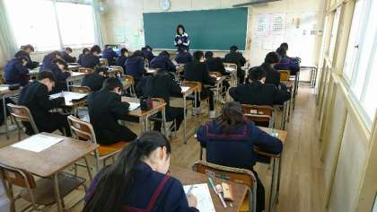 生徒たちは、慣れないマークシートの解答に悪戦苦闘していました。
