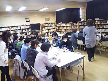 PTAの方々や地域のボランティアの方々がお手伝いしてくださいます。事前にお集まっていただき、見本を作成していただきました。