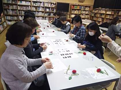 本日6限に、3年生に贈るコサージュを2年生で作成します。