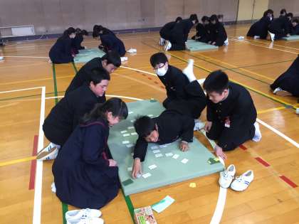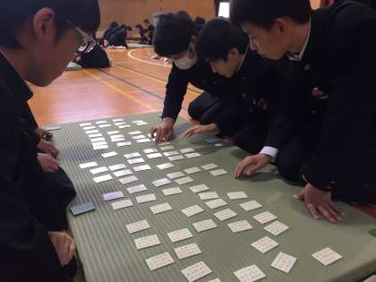 人気の“ちはやぶる”の歌や一字決まりの歌、自分の名前に関連する歌など、ねらっていた札が取れた時の「よっしゃー」という声が印象的でした。放課後に残っての練習や小テストの成果が出ていたように思います。