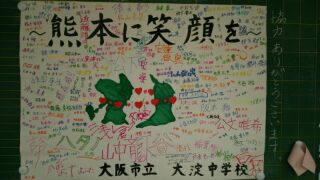 生徒会主催で、地震が起こった熊本県の人々にむけて応援メッセージを送ることになりました。たくさんの生徒たちが記名してくれました。