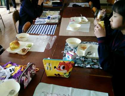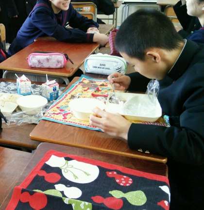 中学校では小学校の頃より1.3倍の量で調整していますが、机上の容器はきれいに完食状態でした。毎日の食事から健康でたくましい身体を作りましょう。