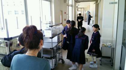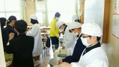 教室での男子の食欲にびっくり!焼きそばをお皿いっぱいによそって食べていました。