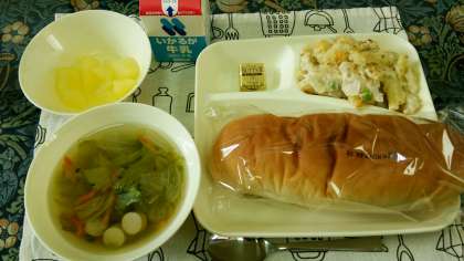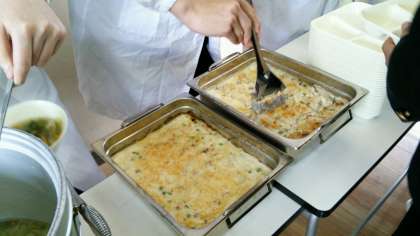 本日の給食は、生徒の大好きなグラタンでした。給食当番がみんな均等に分けて入れていました。今日もおいしい給食ありがとうございました。