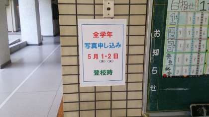 5月1日(月)・2日(火)、朝玄関で学級写真の申し込み受けを行っております。