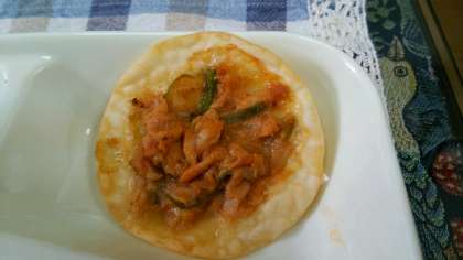 ピザは小さいサイズですが、ホテルパンの上にしっかり油がきられたツナにピーマンとチーズが多く盛られていました。