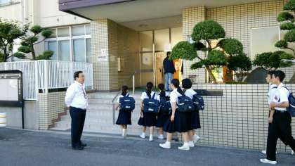 中間テスト1日目。いつもと同じ、大淀中生徒の規則正しい生活が、朝の登校から始まります。