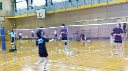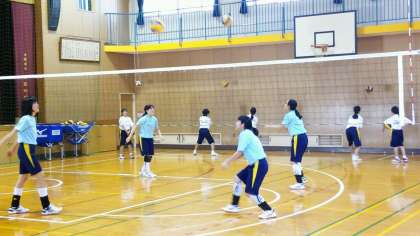 体育館では、バレーボール部とバドミントン部が活動していました。