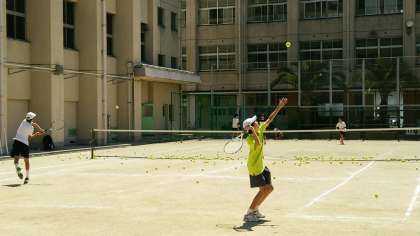 運動場では、ハンドボール部とテニスが活動し、武道場では剣道部が熱心に活動していました。今日は暑かったので熱中症に注意しましょう。