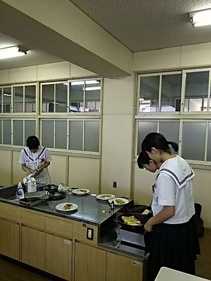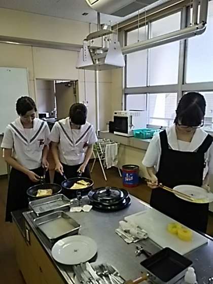 土曜授業終了後、今年度初めて家庭科部で調理実習を行いました。