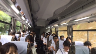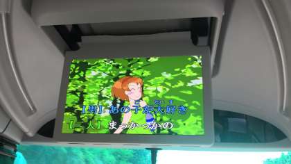 吉野川へ移動する間、バスでは、カラオケ大会です。