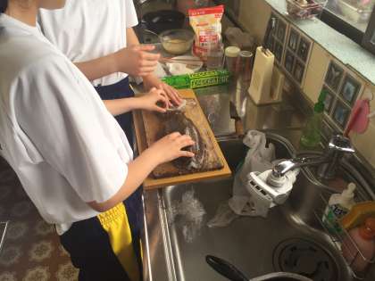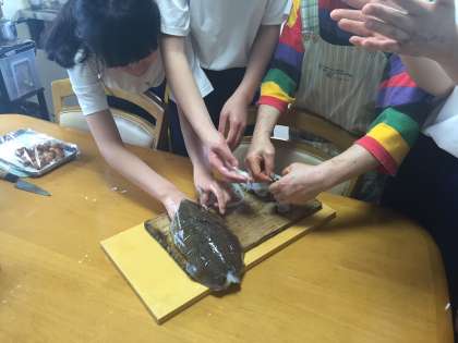 晩御飯を作っていました。鯛とイカをさばき、刺身にしました。