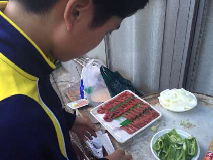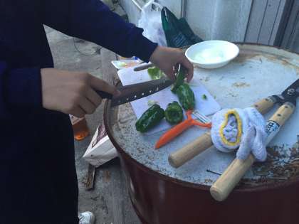 晩御飯の準備をしていました。こちらのお家も外で焼肉のようです。