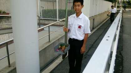 毎週金曜日は朝清掃です。昨日は雨、風、 雷の嵐でした。歩道にはごみが散乱。今朝の清掃はたいへんでしたが、大淀中の生徒は笑顔で気持ちの良いあいさつで清掃をやっていました。ご苦労様です。