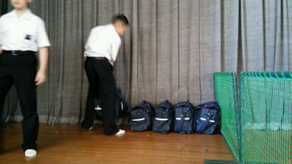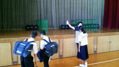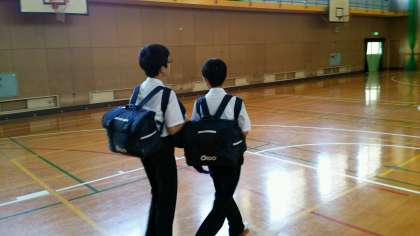 明日からの一泊移住に備えて、本日は朝から泊行事の準備と通常の勉強道具を身体の前後に掛けて登校です。まだまだ小柄な一年生にとっては今日の登校はたいへんだったと思います。しかし、子どもの成長にある程度の負担は必要ですね。