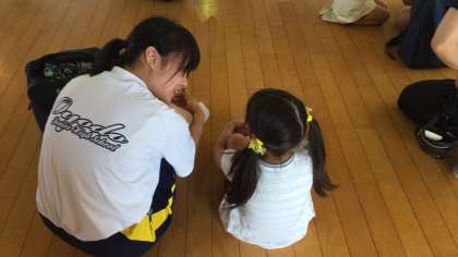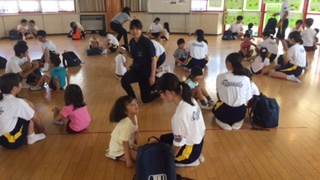 園児のみなさんより、中学生のみなさんのほうが緊張しています。