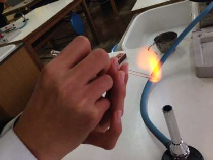 写真は、バーナーでガラス管の端を閉じているようすです。