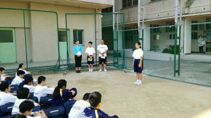 出発式を岡本くん司会で行いました。
